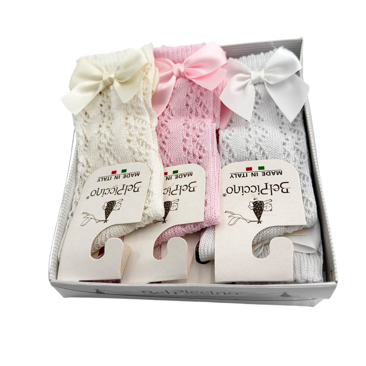 6 Calzino Con Fiocco in Cotone/Filo Bimba