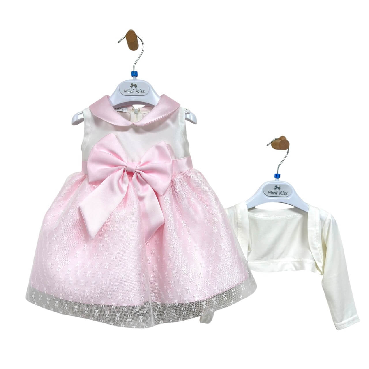 Eleganza e dolcezza si incontrano in questo raffinato abito da cerimonia firmato Mini Kiss, pensato per accompagnare le occasioni più speciali con stile e qualità tutta italiana.