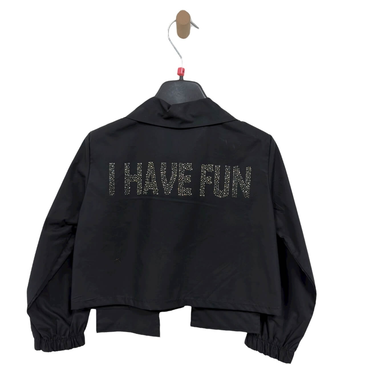 Camicia dal taglio corto con colletto classico e chiusura frontale con bottoni. Le ampie tasche applicate donano un tocco moderno e pratico, mentre la parte posteriore è impreziosita dalla scritta “I HAVE FUN” realizzata con piccoli dettagli decorativi. Le maniche lunghe con polsini elasticizzati completano il design, garantendo comfort e stile in ogni occasione.