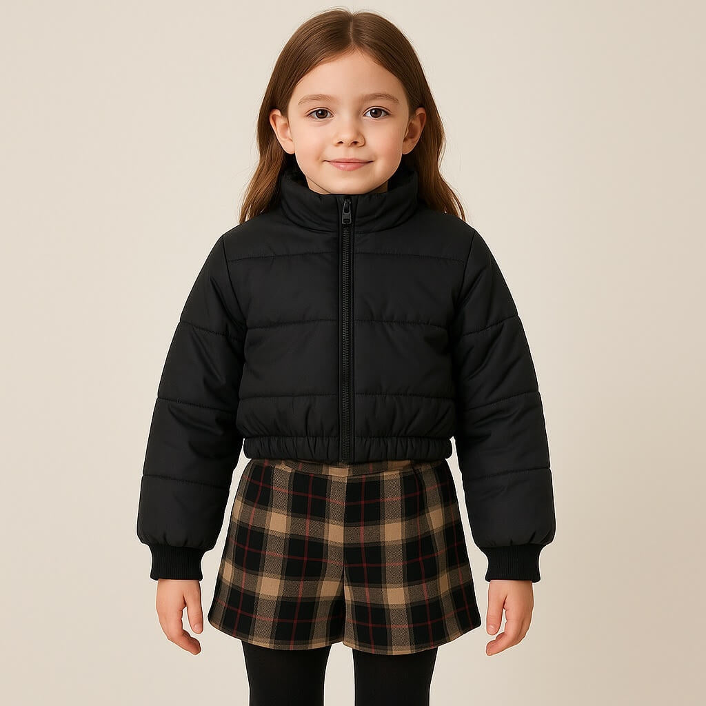 Un outfit dal design trendy e raffinato, perfetto per la stagione autunnale e invernale. Ideale per la scuola, il tempo libero o le occasioni più chic.