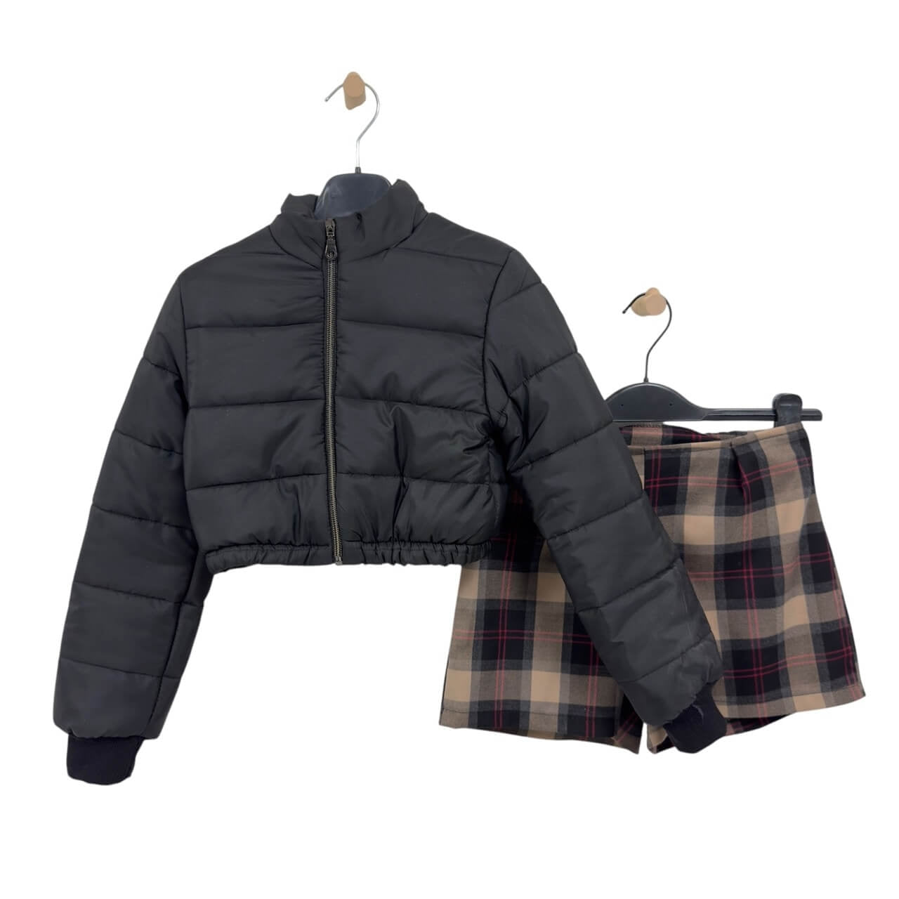 Completo bambina Camilla 2 pezzi giubbino e pantaloncini a quadri