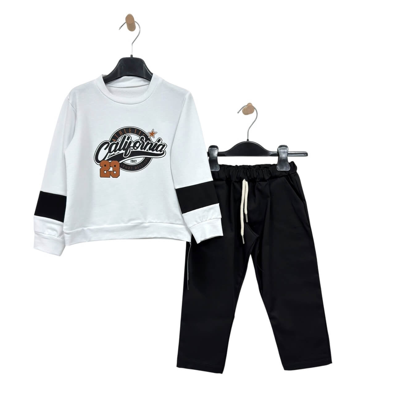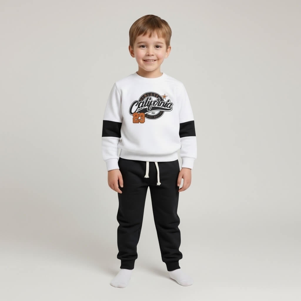 Comodo e alla moda, questo completo in cotone Made in Italy firmato Monello è pensato per garantire libertà di movimento e comfort durante tutta la giornata. La felpa a maniche lunghe con Stampa applicato e il pantalone a tuta offrono praticità e un look moderno, ideale per la scuola, il tempo libero e le giornate più fresche.