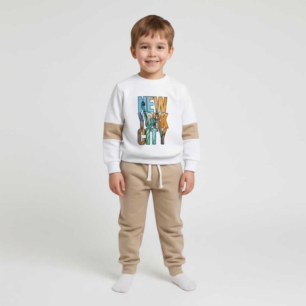 Comodo e alla moda, questo completo in cotone Made in Italy firmato Monello è pensato per garantire libertà di movimento e comfort durante tutta la giornata. La felpa a maniche lunghe con Stampa applicato e il pantalone a tuta offrono praticità e un look moderno, ideale per la scuola, il tempo libero e le giornate più fresche.
