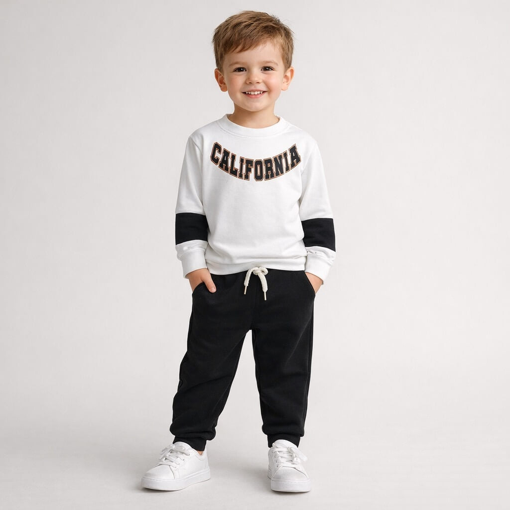 Comodo e alla moda, questo completo in cotone Made in Italy firmato Monello è pensato per garantire libertà di movimento e comfort durante tutta la giornata. La felpa a maniche lunghe con Stampa applicato e il pantalone a tuta offrono praticità e un look moderno, ideale per la scuola, il tempo libero e le giornate più fresche.