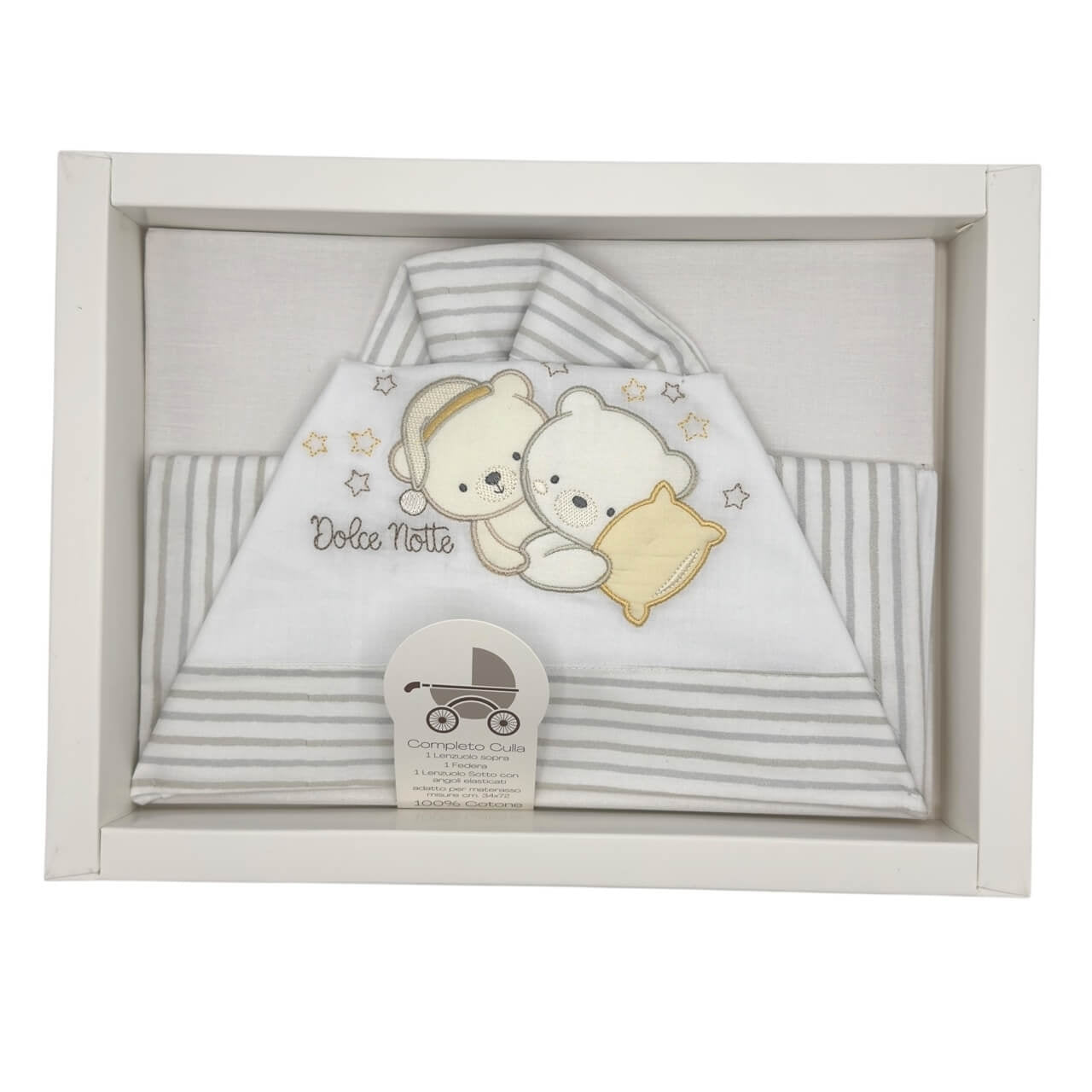 Set lenzuolino per culla realizzato in 100% cotone, morbido e delicato sulla pelle del neonato. Un completo pratico e sicuro, ideale per garantire comfort durante il riposo e la nanna quotidiana.