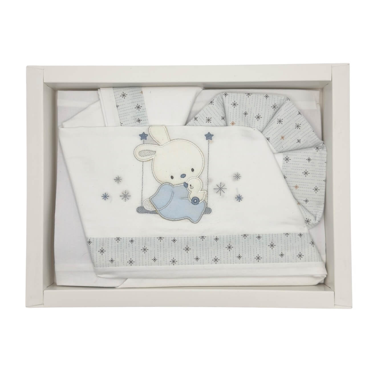 Set lenzuolino per culla realizzato in 100% cotone, morbido e delicato sulla pelle del neonato. Un completo pratico e sicuro, ideale per garantire comfort durante il riposo e la nanna quotidiana.