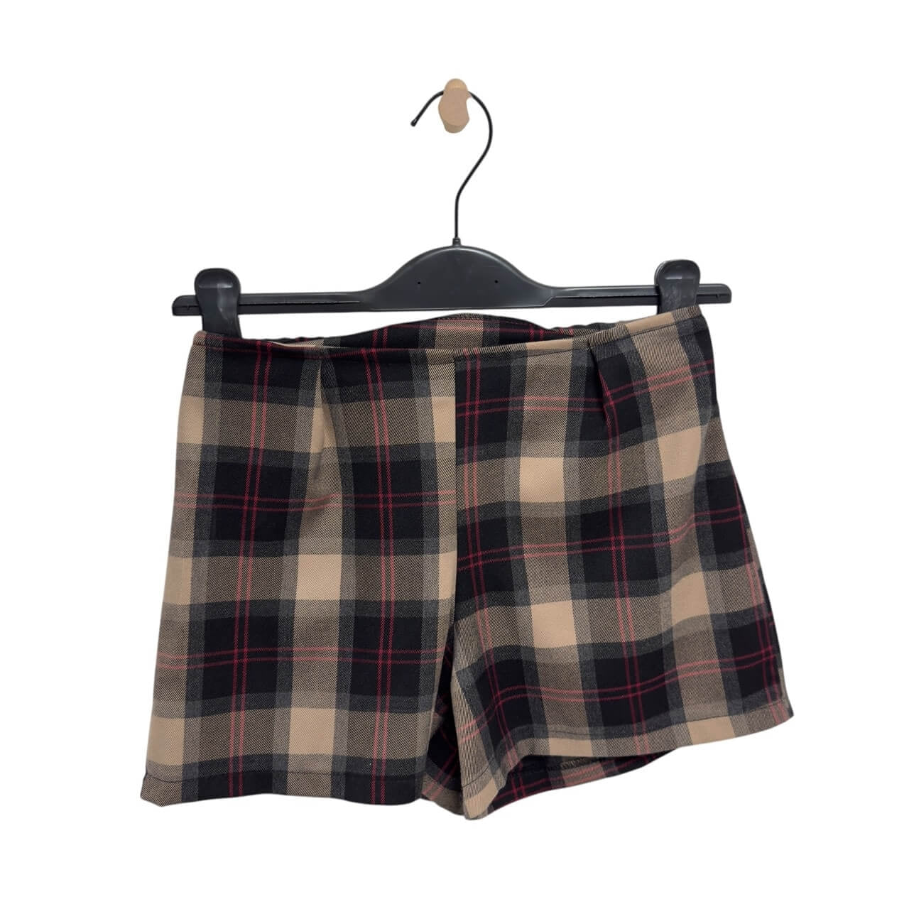 • Gonna a quadri nei toni del grigio e rosa con elastico in vita, comoda e stilosa.