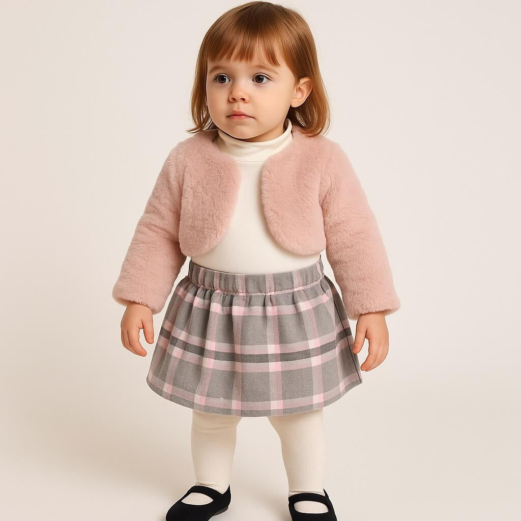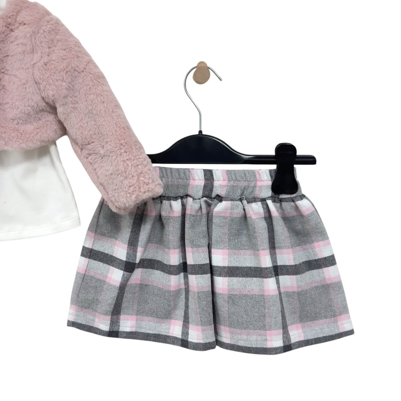 Completo bambina Camilla 3 pezzi con pellicciotto e gonna