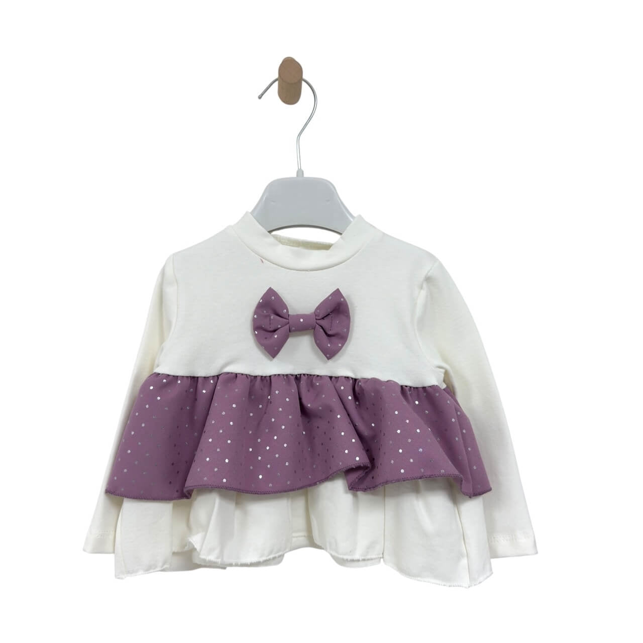 Maglia a maniche lunghe con balza e fiocco applicato sul davanti