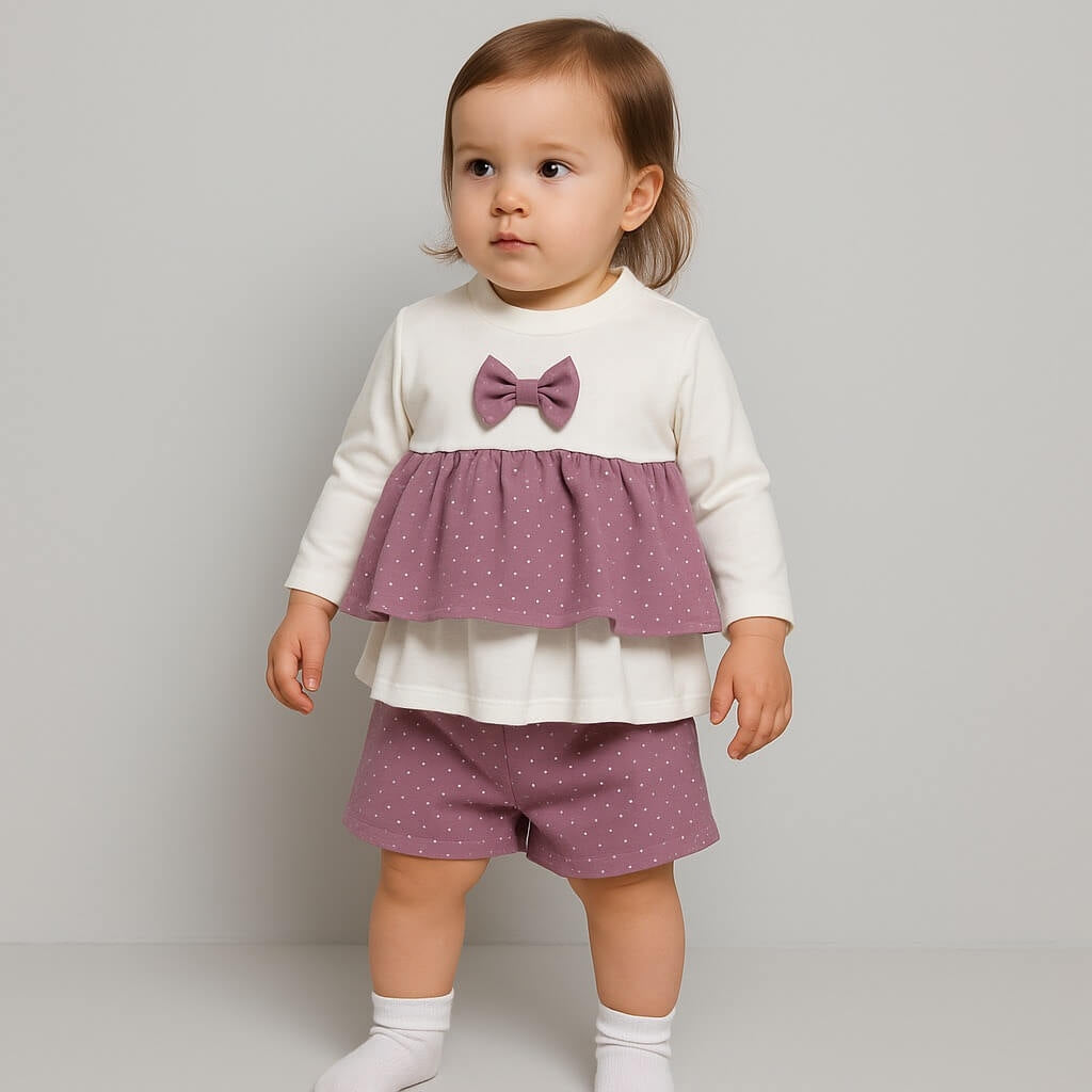 Completo caldo e raffinato per neonata firmato Monellina, pensato per garantire comfort e stile durante la stagione invernale.