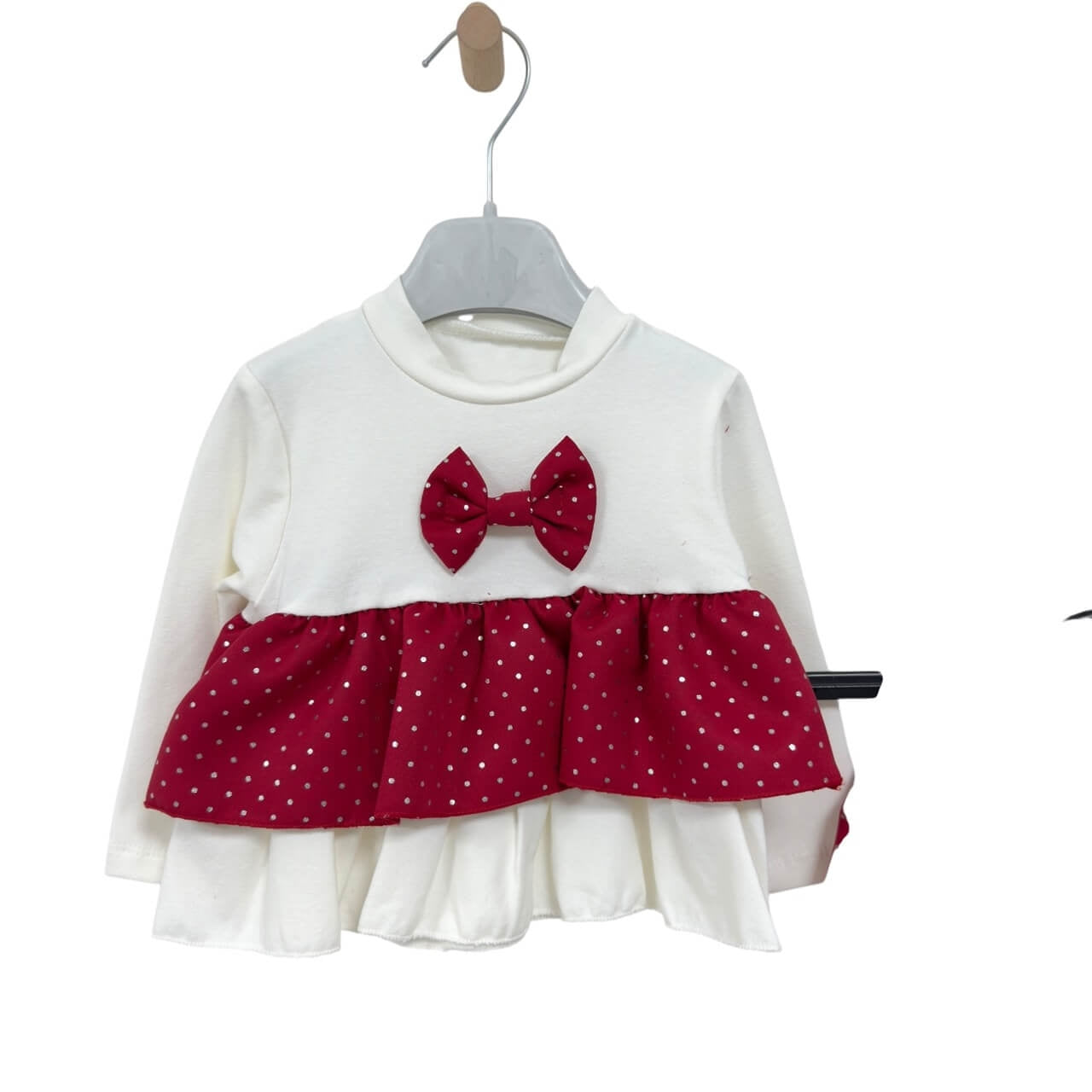 • Maglia a maniche lunghe con balza e fiocco applicato sul davanti