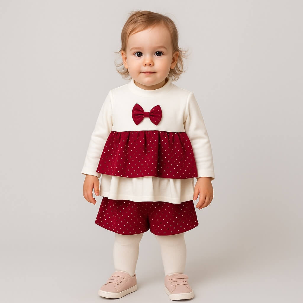 Completo caldo e raffinato per neonata firmato Monellina, pensato per garantire comfort e stile durante la stagione invernale.