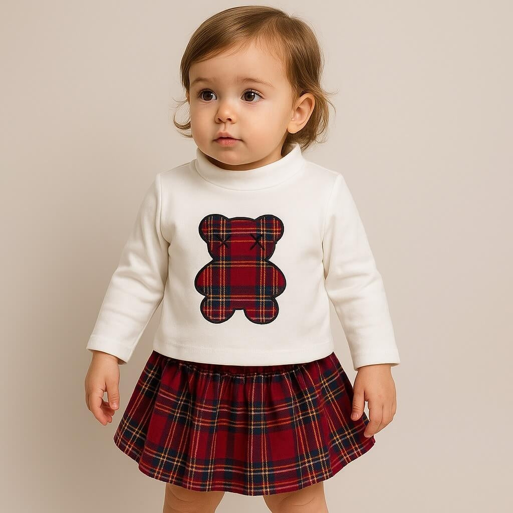 Completo caldo e raffinato per neonata firmato Monellina, pensato per garantire comfort e stile durante la stagione invernale.