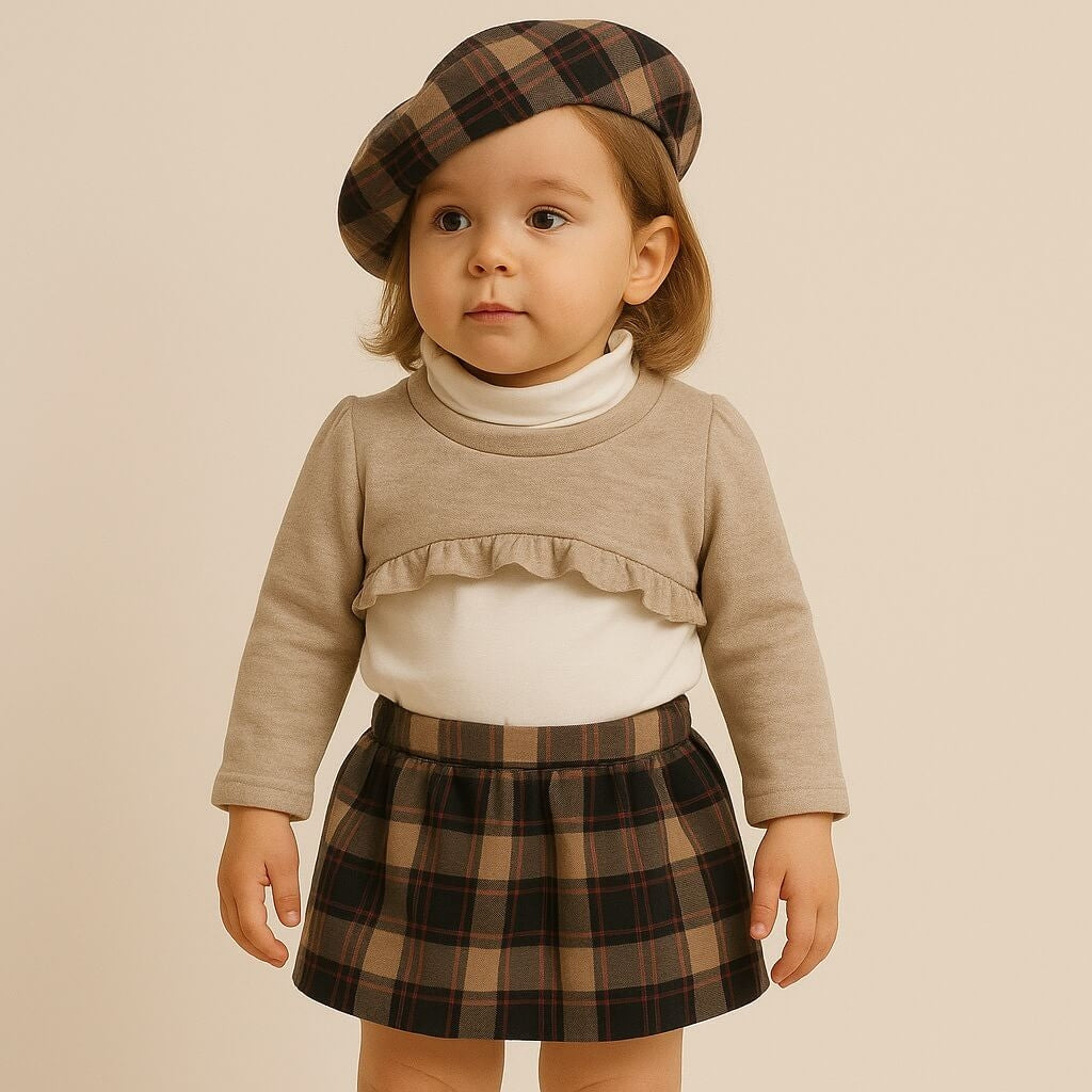 • Basco coordinato in fantasia scozzese, per un tocco dolce e raffinato