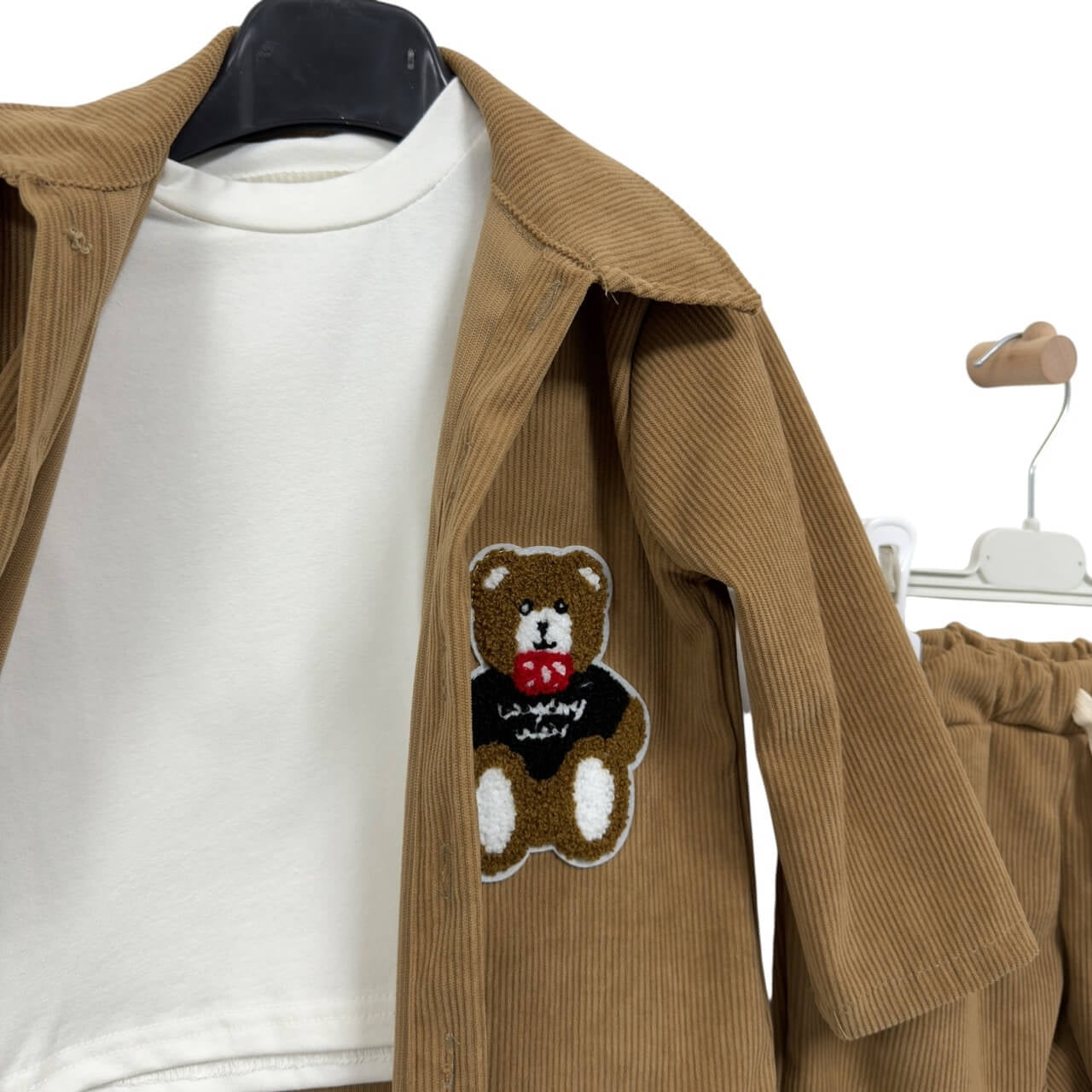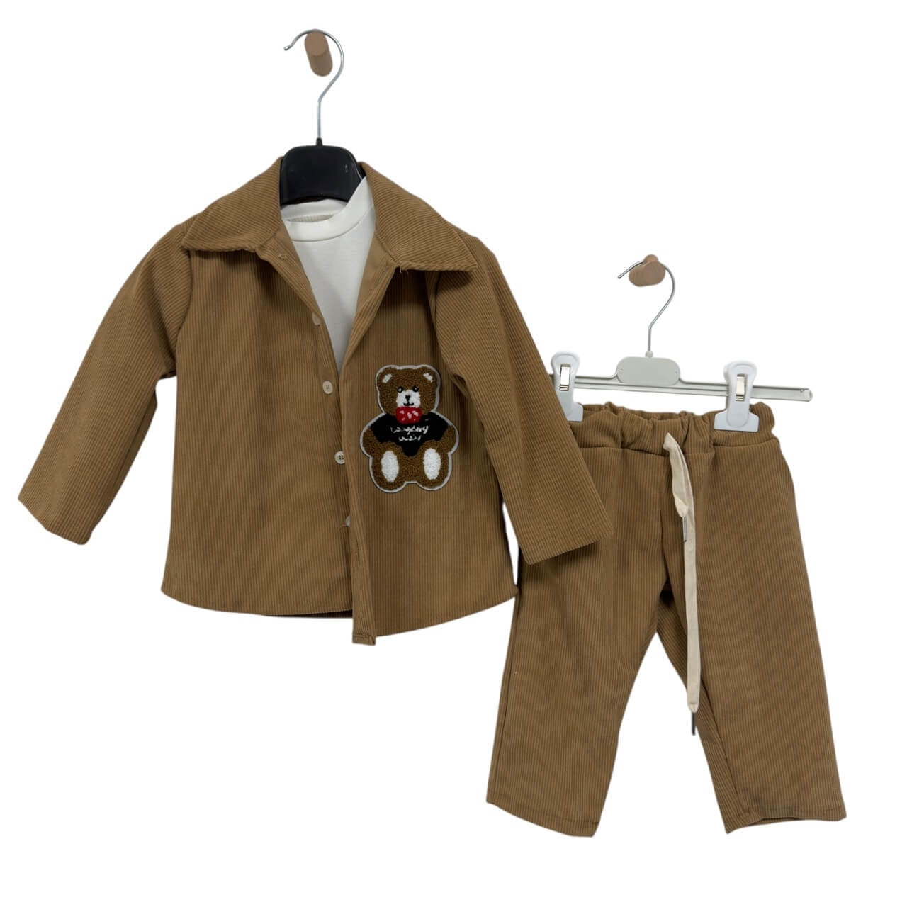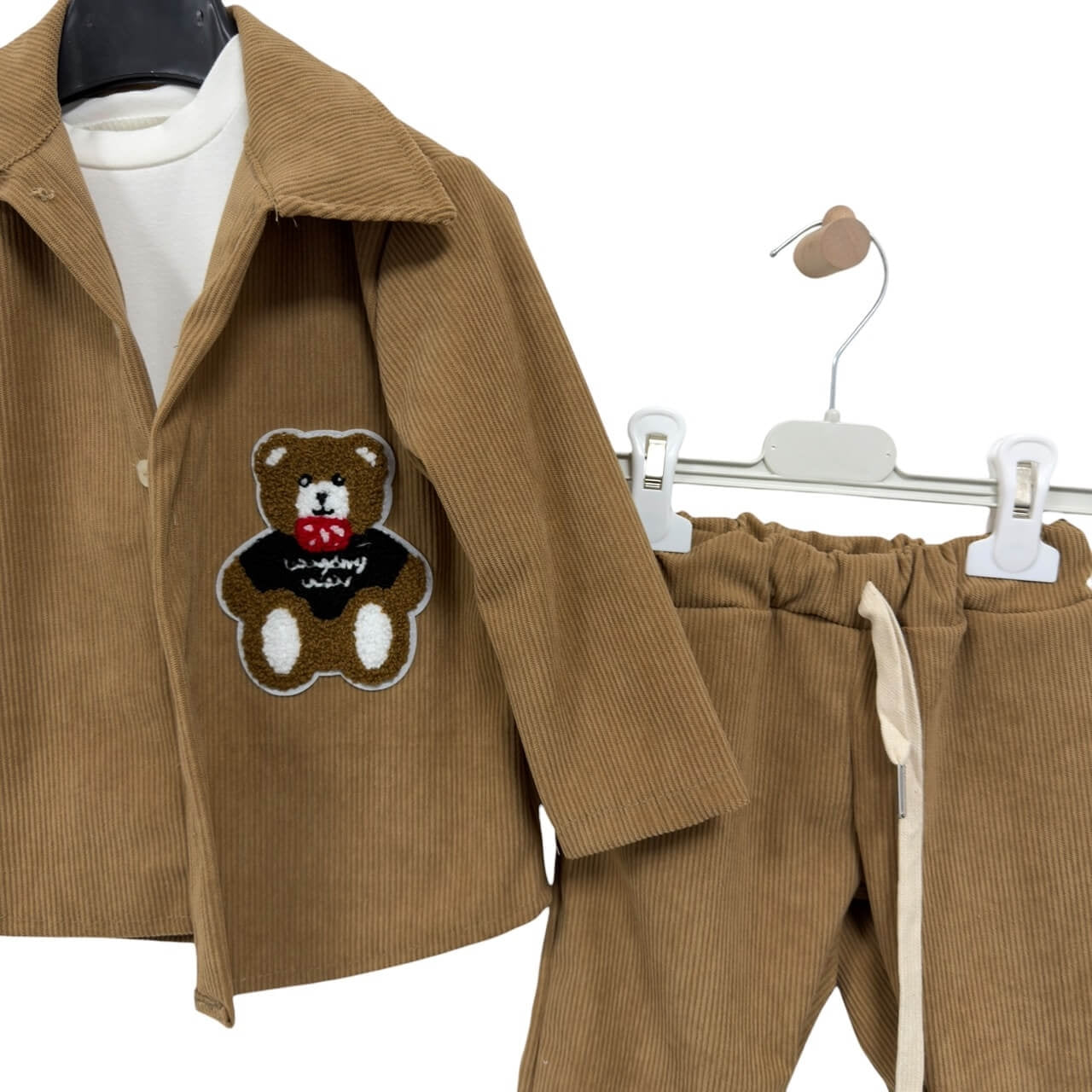 • Pantaloni abbinati in velluto, con elastico e coulisse in vita per il massimo comfort