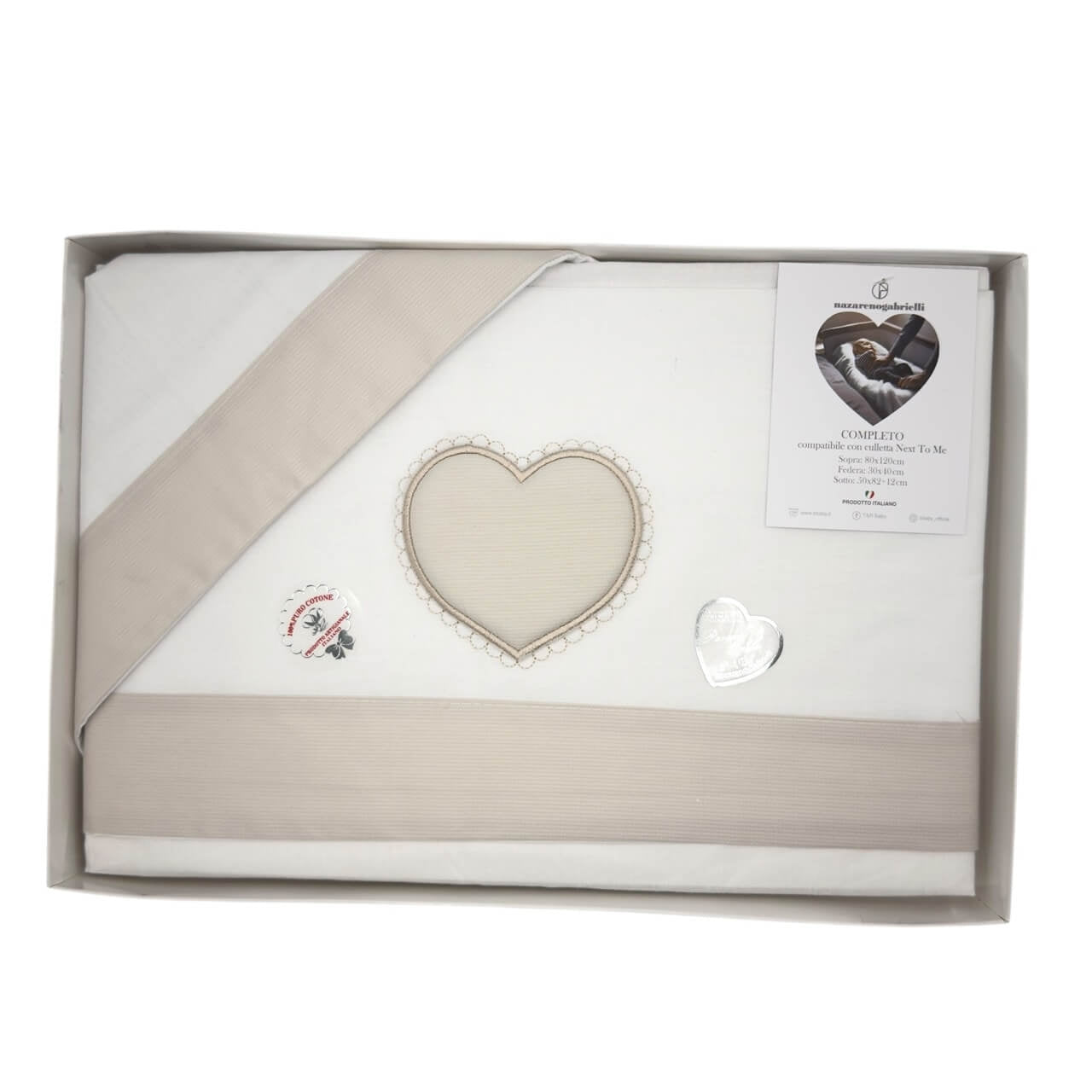 Completo lenzuola 3 pezzi in 100% puro cotone , il set lenzuola è misura maxi compatibile con le misure culla next to me. Misure: Lenzuolo sopra 80x120 cm - Sottolenzuola con angoli 50x82x12 cm - Federa cuscino 30x40 cm. Prodotto ideato, tessuto e confezionato in Italia.Il lavaggio può essere effettuato a mano o in lavatrice ad una temperatura massima che non superi i 40°C.