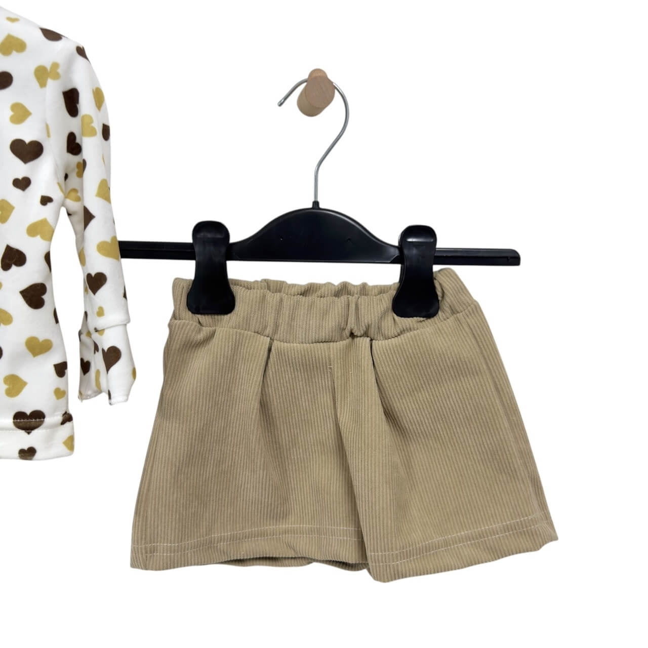 Shorts in velluto a costine color beige, con elastico in vita per una vestibilità perfetta e pratica