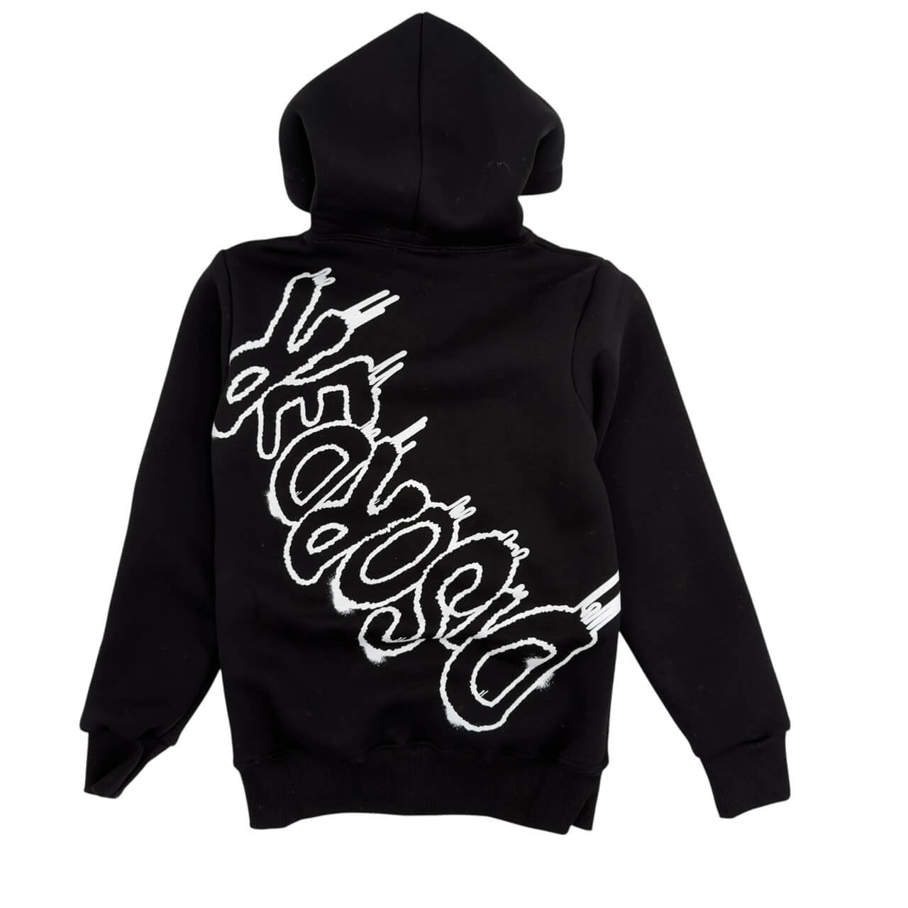 Felpa con zip ecappuccio in cotone pesante con stampa Frontale. Dettagli curati look moderno e grintoso. Ideale per un outfit casual e contemporaneo.