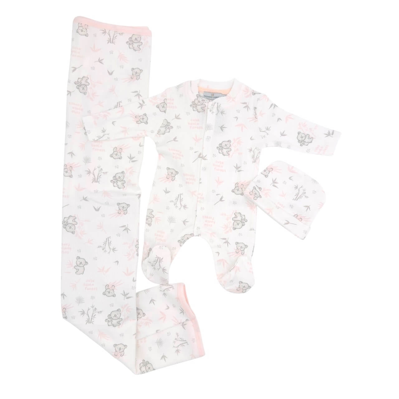 Dolcissimo set firmato Nazareno Gabrielli, ideale per le giornate più fresche, composto da 3 pezzi coordinati pensati per il passeggino. Il set include: