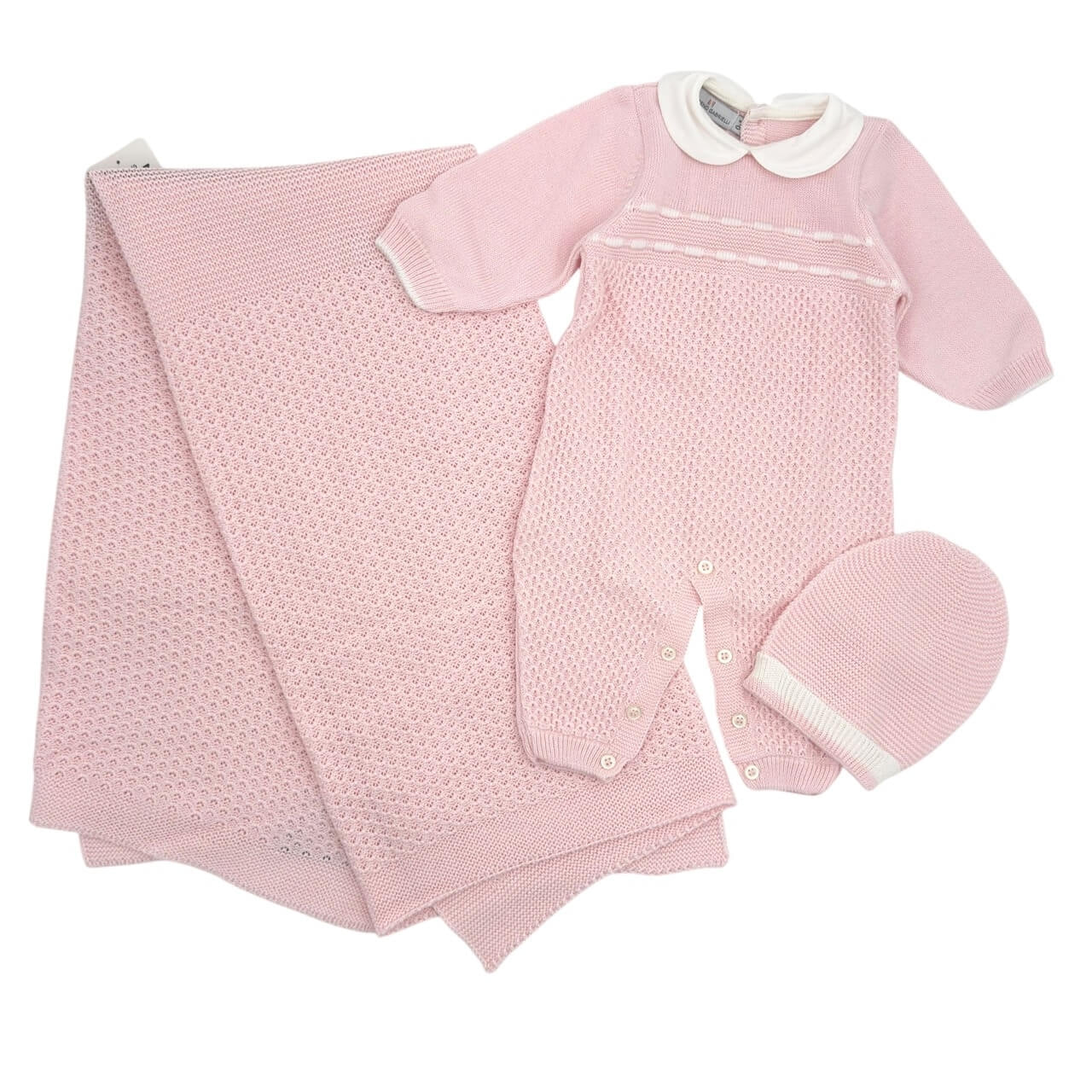Un elegante e raffinato Set 3 pezzi in Filo/Cotone firmato Nazareno Gabrielli, perfetto per accogliere il tuo bambino con morbidezza e stile. Ideale per la nascita, per cerimonie, battesimi o come regalo speciale, il set comprende:
