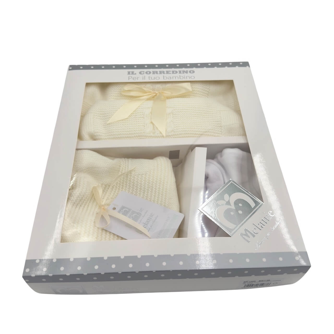 Set corredino elegante e pratico, ideale per i primi mesi del bambino. Realizzato in morbido tessuto acrilico, è composto da: