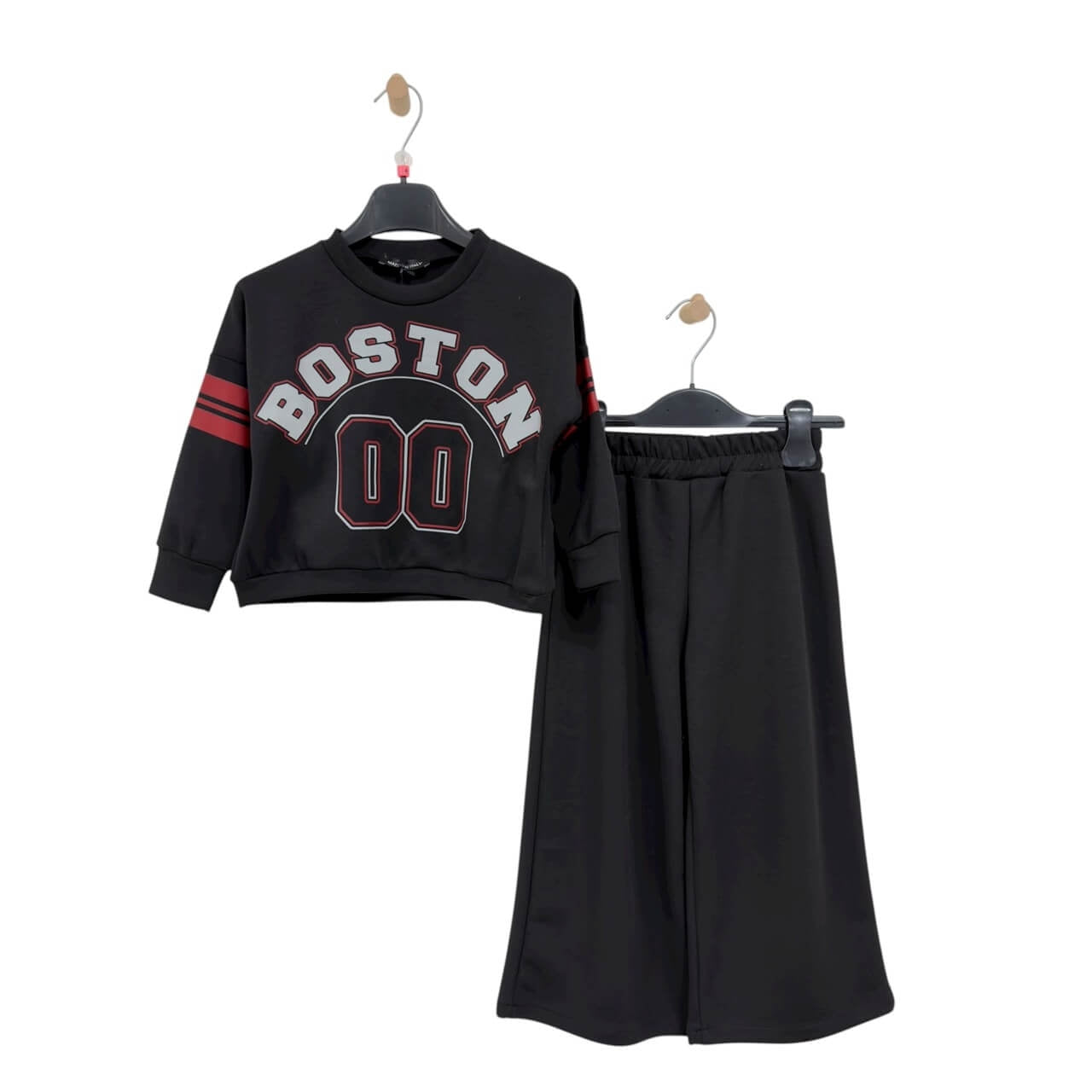 Completo comodo e moderno composto da felpa girocollo con stampa frontale in stile college e pantalone ampio con fascia elastica in vita. Il tessuto tecnico leggermente elasticizzato offre libertà di movimento e un’ottima vestibilità, perfetta per accompagnare le giornate più dinamiche.