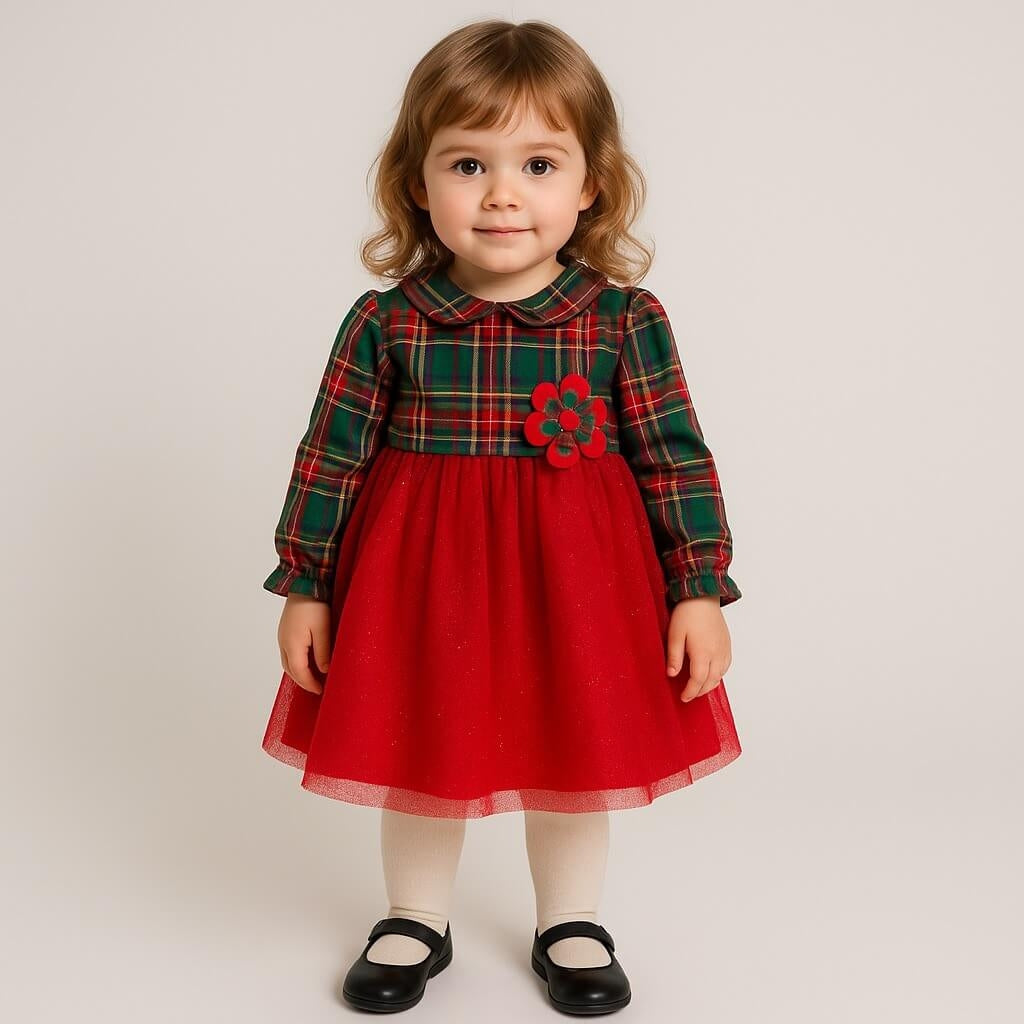 Regala un tocco di magia alle feste con questo incantevole abito natalizio per bambina, perfetto per cerimonie, foto ricordo e occasioni speciali.